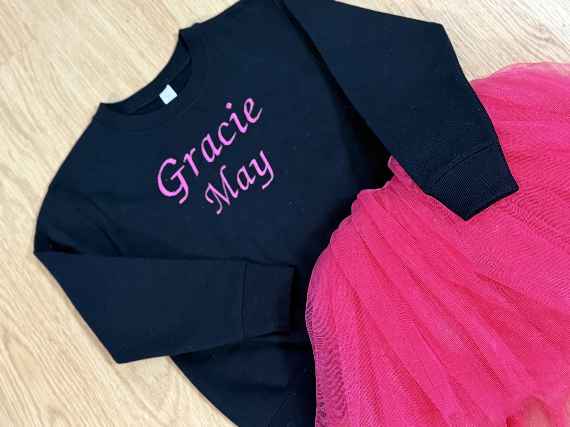 Personalized embroidered name sweatshirt pick your shirt color and thread color.